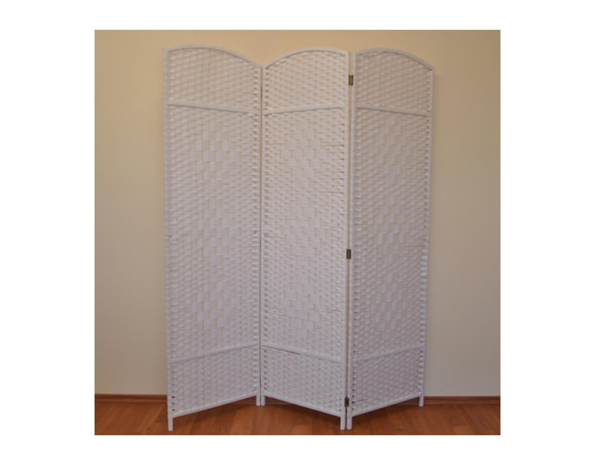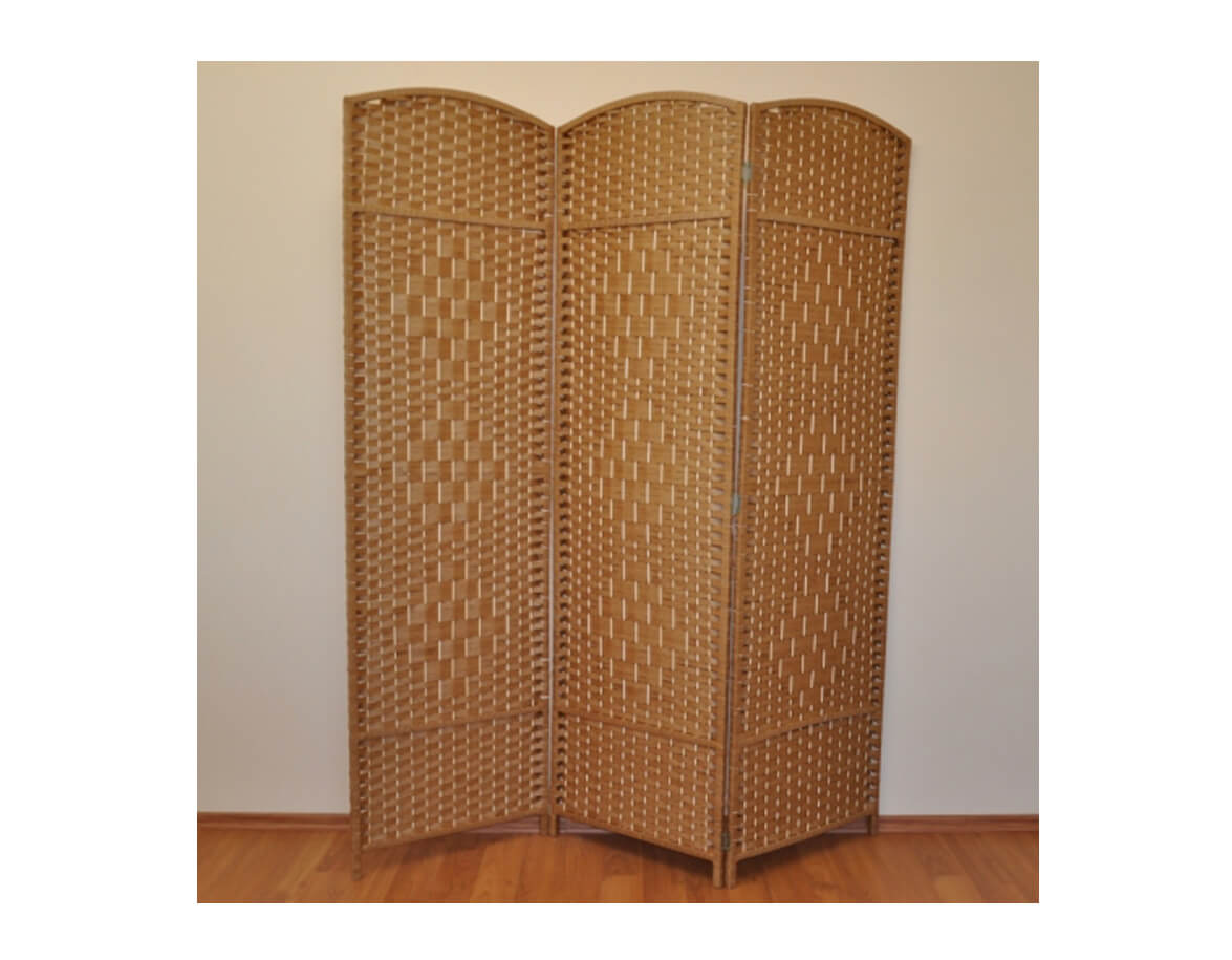 Trojdielna konštrukcia je vyrobená z dreva a vypĺňa ju výplet z papierových povrazov. Výplet na paravane vytvára nerušivú geometrickú štruktúru a má neutrálne farebné riešenie. Príjemný a prírodný vzhľad paravánu sa hodí do priestoru vášho masážneho salónu, pracovne aj domácnosti.