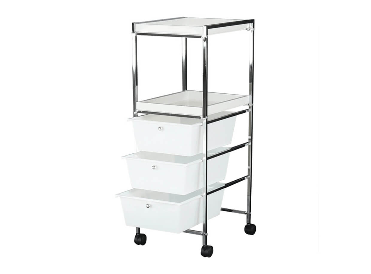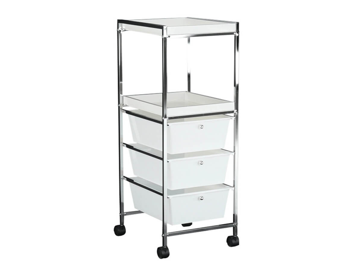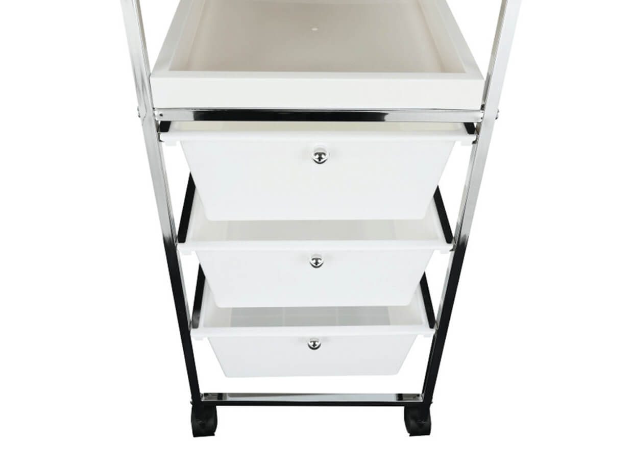 Regál môžete jednoducho premiestňovať pomocou zabudovaných 4 koliesok, takže budete mať pomôcky vždy k dispozícií a môžete sa naplno venovať svojim klientom.