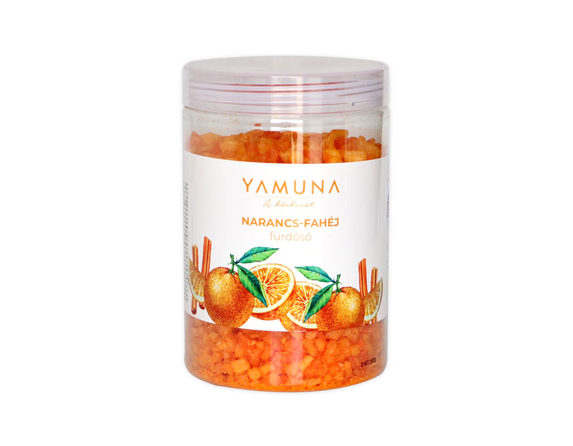 Morská soľ s vôňou pomaranča a škorice pre oddychový kúpeľ.