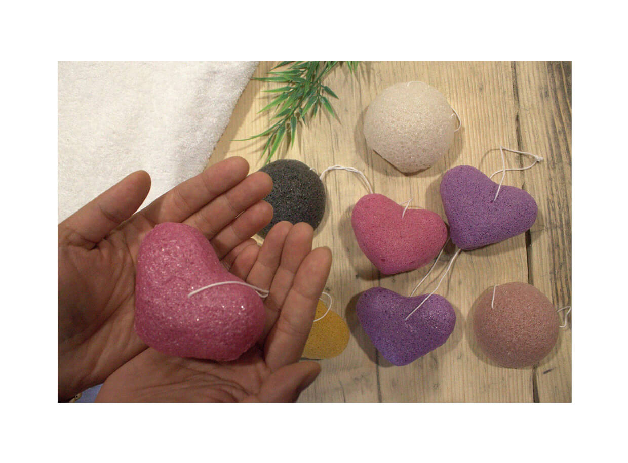 Japonská špongia konjac ružová, vyrobená z rastlinných vlákien koreňa Amorphophallus Konjac, sa tradične používa na čistenie tváre. Je ohľaduplná ku všetkým typom pleti a vďaka mäkkej a jemnej textúre je vhodná pre citlivú pokožku. Hubka je modelovaná do tvaru srdca a veľkosťou padne priamo do dlane. Tenký motúz zaisťuje bezpečné držanie počas používania a vďaka nemu sa dá špongia zavesiť a nechať uschnúť.