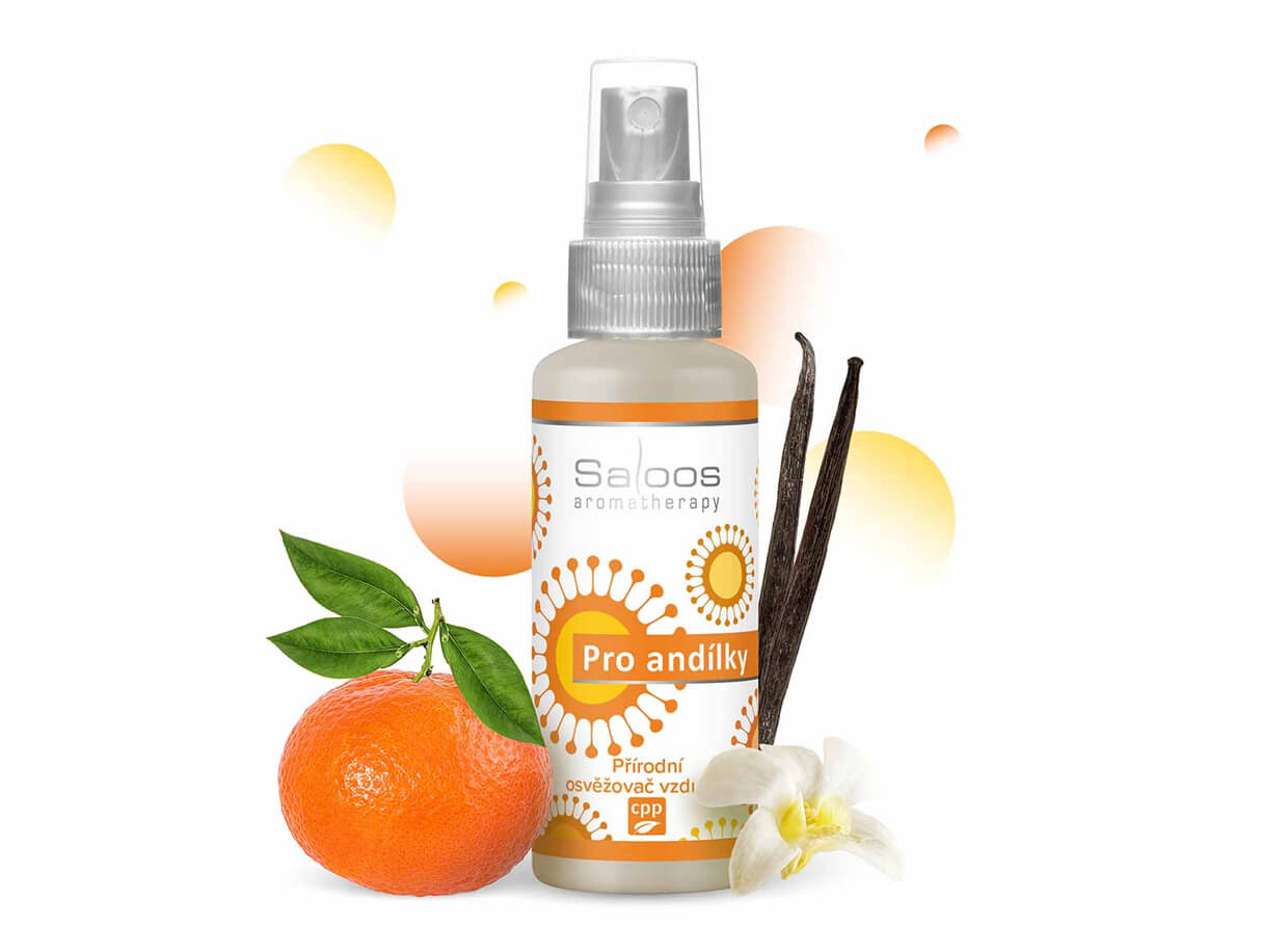 Osviežovač vzduchu SALOOS je zmes s prírodnými éterickými olejmi namiešaná špeciálne pre deti. Svieža vôňa mandarínky a citrusov v kombinácii s vanilkou navodzuje pohodu, radostnú náladu a uvoľnenie.