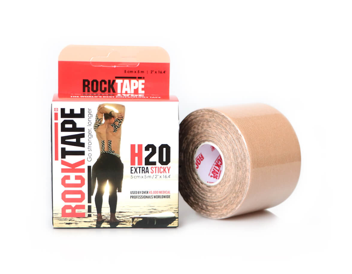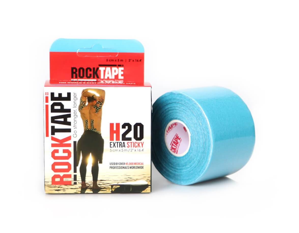 Tejp RockTape H2O je kineziologická páska exkluzívne navrhnutá na nosenie počas vodných športov. Lepiaca strana obsahuje lepidlo odolné voči vode a potu, vďaka čomu na pokožke vydrží až 10 dní.