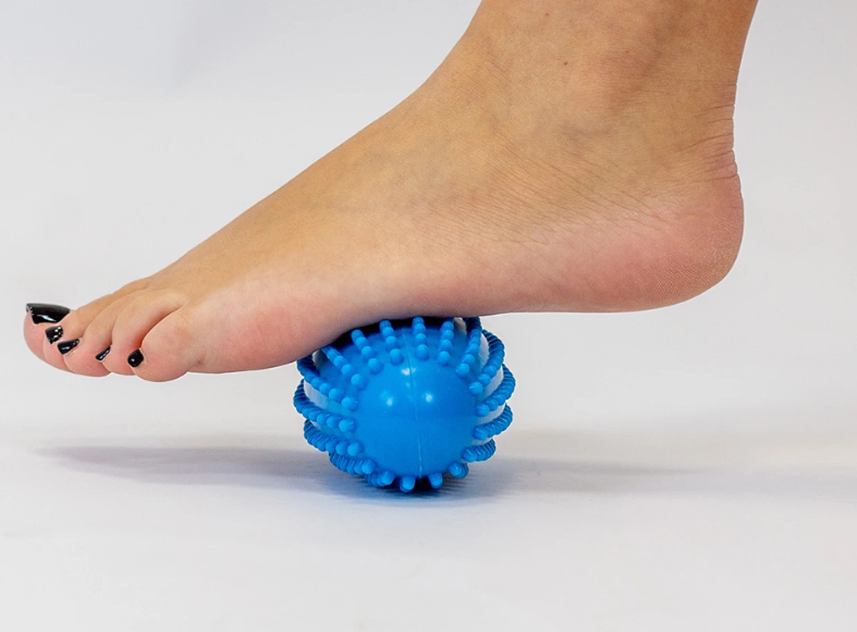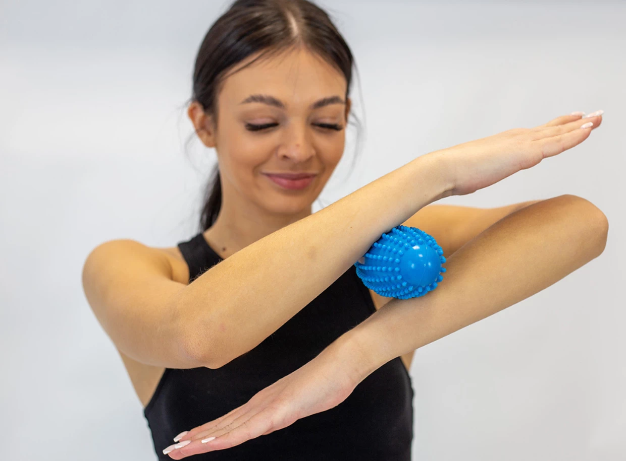 Použitie: Priložte loptičku na sval alebo oblasť, v ktorej cítite bolesť alebo stuhnutosť a oprite sa o stenu, podlahu alebo iný pevný povrch. Tlak postupne zvyšujte a počkajte, kým sa napätie (spúšťové body) nezačne uvoľňovať. Pre automasáž loptičkou pomaly rolovaním masírujte bolestivé miesto, kým bolesť nezmierni.