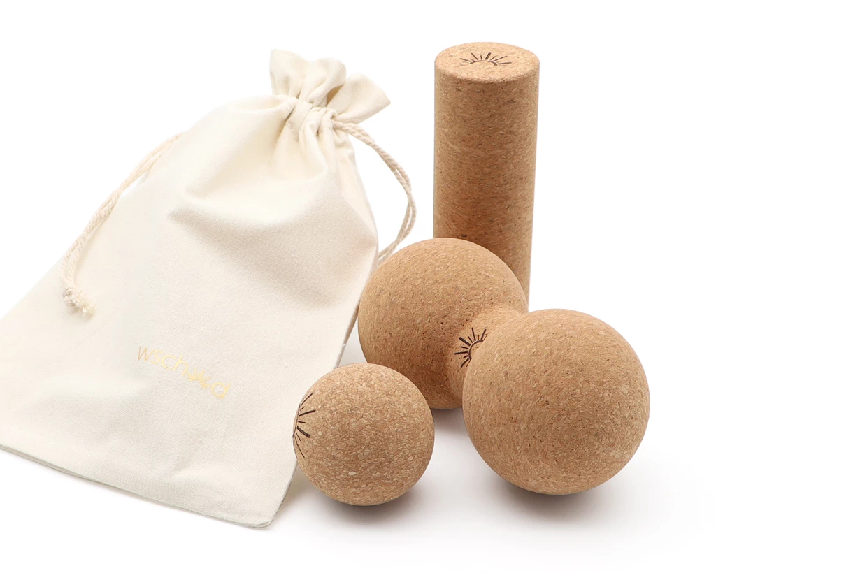 Sada pomôcok určených na automasáž a cvičenie v pohodlí domova, v telocvični alebo v práci či na cestách. Pomôcky sú vyrobené z prírodného korku, ktorý je pevný, príjemný na dotyk a zároveň ľahký, čo umožňuje aj pohodlnú prepravu.