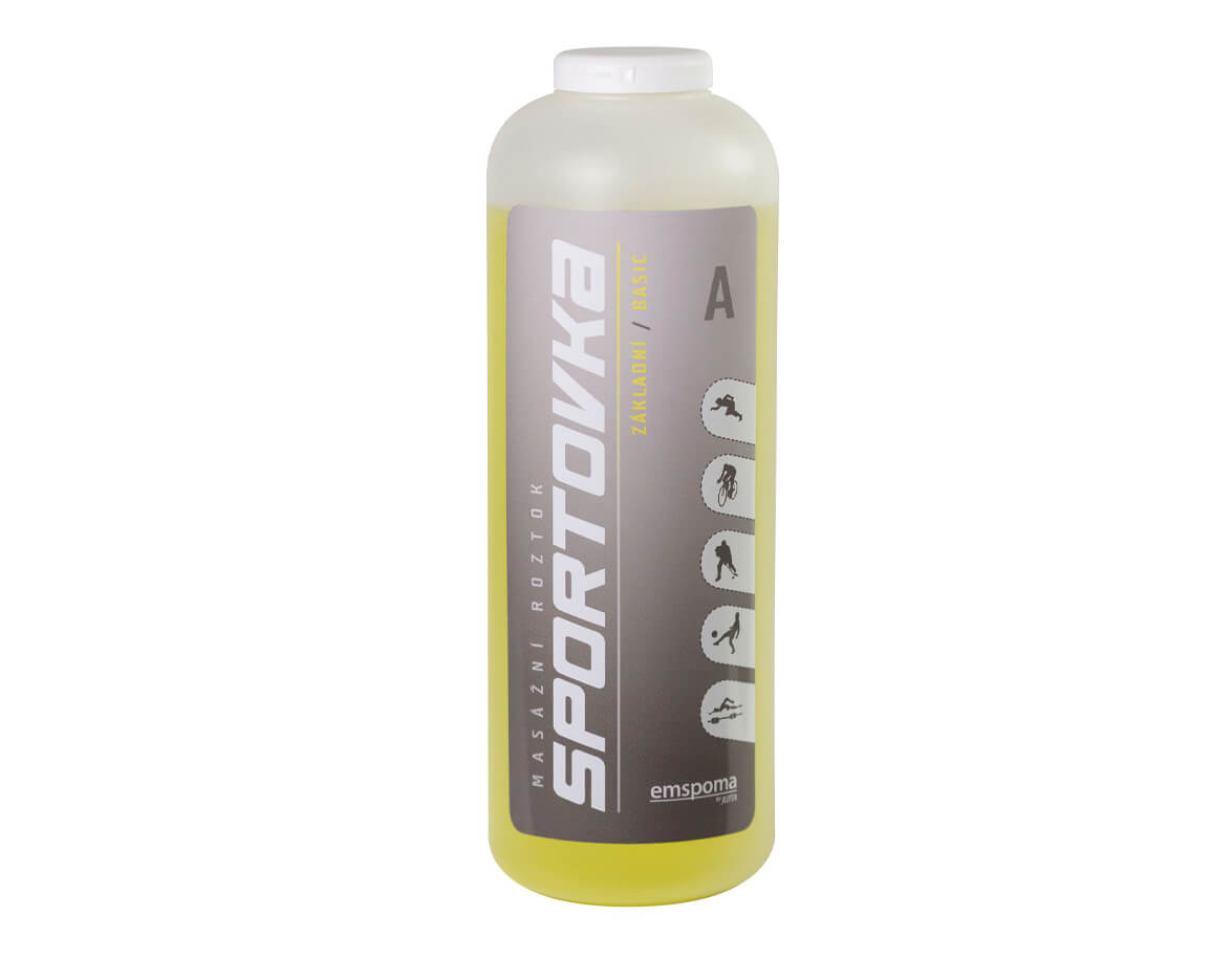 Masážny roztok Sportovka Základná na báze liehu s extraktom z repíka lekárskeho, ktorý podporuje čistenie i regeneráciu pokožky. Instantne sa vstrebáva, zvyšuje odolnosť voči baktériám a iným mikrobiologickým vplyvom, pokožku tiež zvláčňuje a zjemňuje.