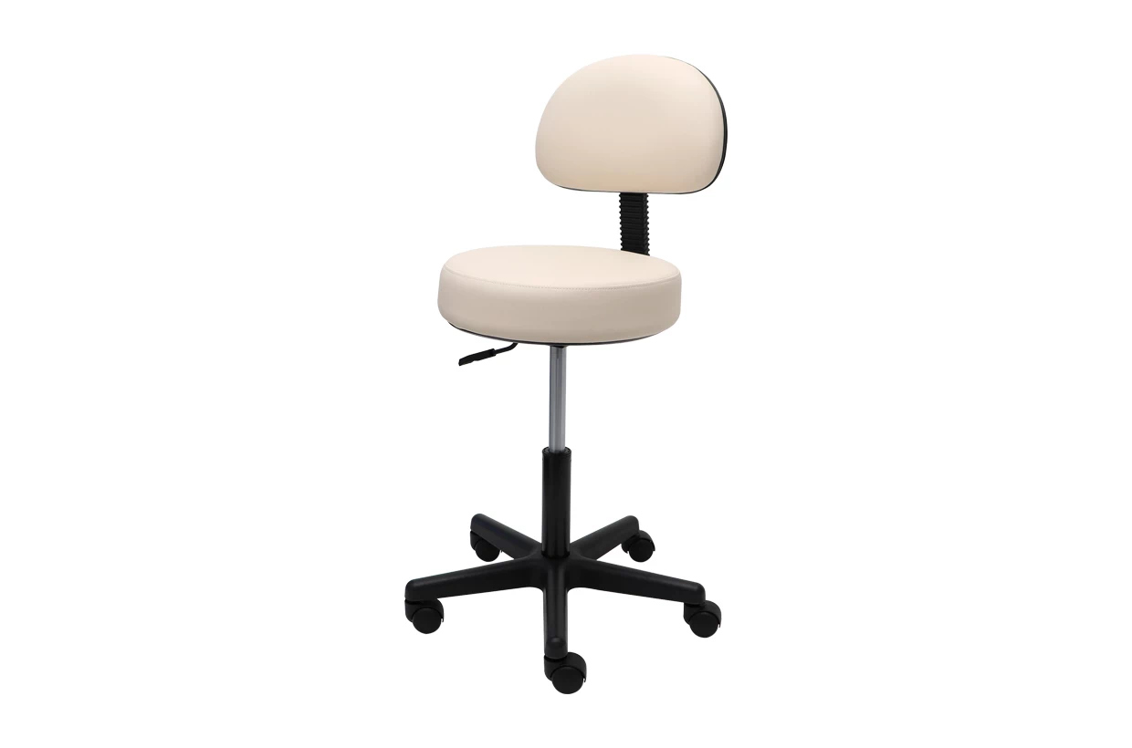 Praktická výškovo nastaviteľná stolička s operadlom chrbta. Ľahký pohyb v priestore zabezpečuje 5 plastových koliesok. Stolička je pohodlná vďaka 9 cm vysokému čalúneniu sedacej časti s jemnou soft-touch koženkou a opierke chrbta, ktorá podopiera driekovú časť chrbtice.