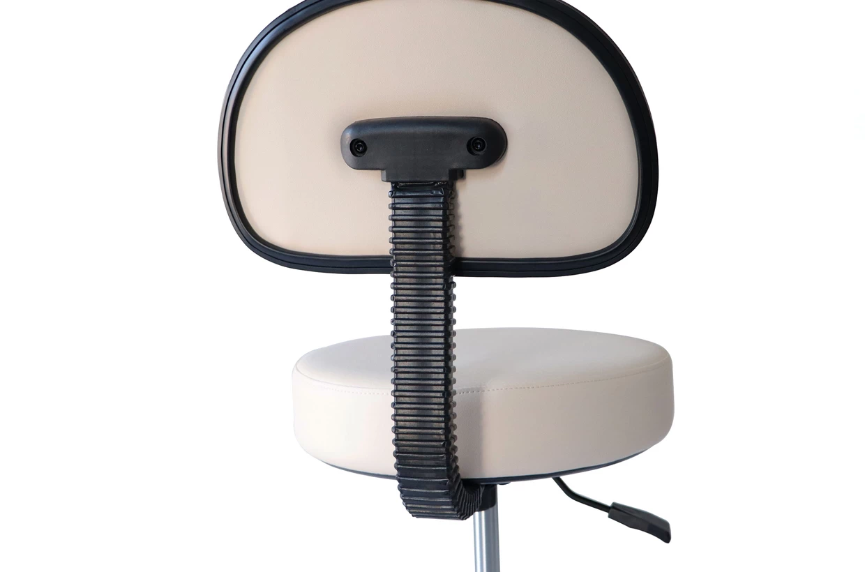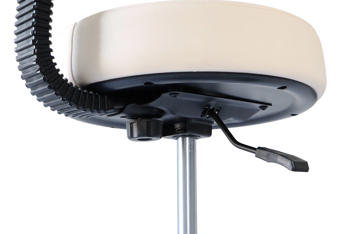 Výškové nastavenie 47 – 63,5 cm je plynulé pomocou páčky pod sedadlom, ktorou sa ovláda plynový piest. Priemer kruhovej sedacej časti 39 cm umožňuje pohodlný, ale aj bezpečný sed, keďže stolička má nosnosť až 120 kg.