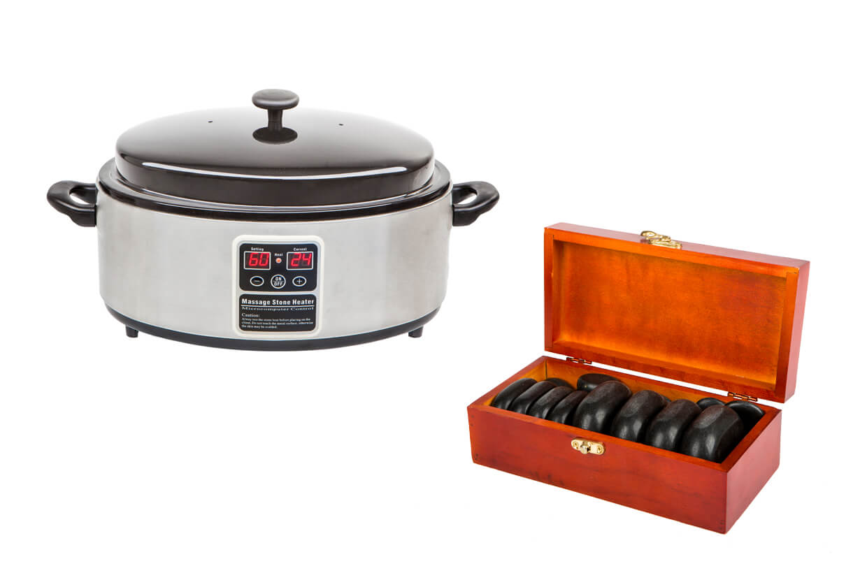 Vo výhodnom sete s 10 % zľavou ponúkame digitálny ohrievač lávových kameňov spolu so sadou lávových kameňov v praktickej drevnej krabičke. Hot Stones masáž alebo masáž lávovými kameňmi sa radí medzi luxusné masážne procedúry. Príjemné teplo preniká hlboko do tkanív masírovanej osoby, rýchlo zohrieva a prekrvuje pokožku, svalstvo, šľachy a kĺby. Pritom sa aj ruky maséra prekrvia, zohrejú a oddýchnu si od rutinných ťahov klasickej masáže.