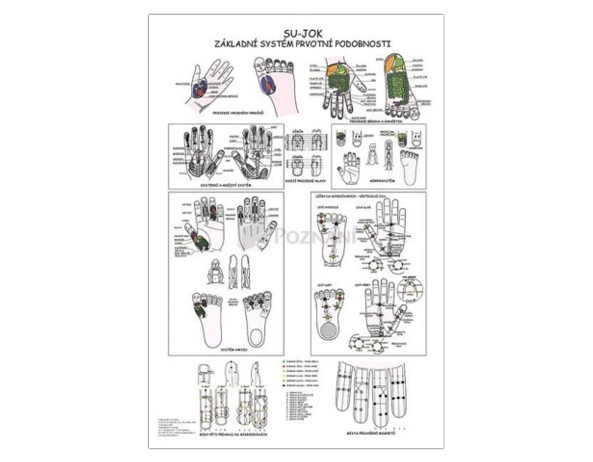 Su Jok je ozdravná metóda založená na podobnosti systémov tela s bodmi na rukách, chodidlách, prstoch a článkoch prstov. Táto mapa ponúka prehľad týchto bodov, so základným popisom na dlaniach, prstoch na rukách, ploskách a prstoch na nohách.