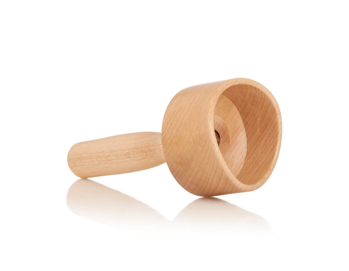 Banka z lakovaného bukového dreva s priemerom 8 cm na maderoterapiu. Masáž bankou stimuluje tok lymfy, prekrvuje a vyhladzuje pokožku problematických častí tela s výskytom vyššej vrstvy podkožného tuku, celulitídy alebo povolenej kože. Vďaka dlhej rukoväti sa s bankou dobre manipuluje.