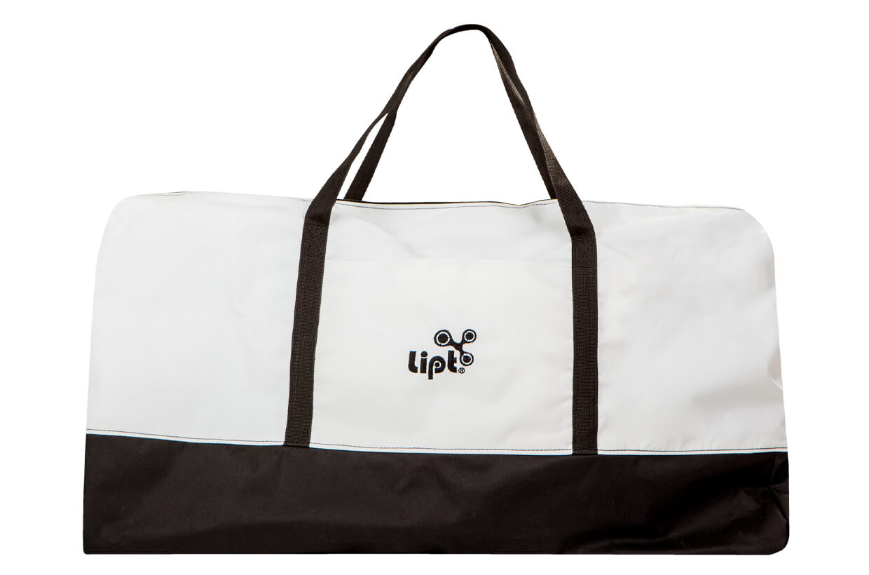 Taška sa zapína na zips a je vybavená dvoma pevnými popruhmi, ktoré umožňujú pohodlné a bezpečné prenášanie masážnej stoličky. Na prednej strane tašky je vrecko na zips a nad ním menší popruh, ktorý zjednodušuje manipuláciu so zbalenou masérskou stoličkou.