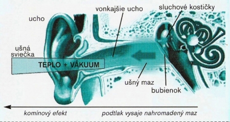 Ušný maz môžeme pomocou sviečky odstrániť veľmi jednoduchým spôsobom. Teplo vytvorené horením sviečky (v zvukovode max. 40°C) zmäkčí nahromadený maz.
