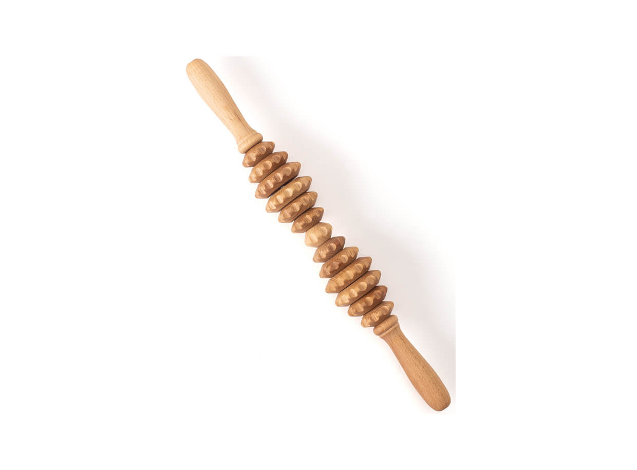 Masážny valček je zložený z 13 ozubených koliesok rôznych rozmerov z bukového dreva. Tvarované rukoväte príjemne padnú do dlaní. Valček je vhodný na ošetrenie problematických partií tela s výskytom vyššej vrstvy podkožného tuku, celulitídy a povolenej kože.