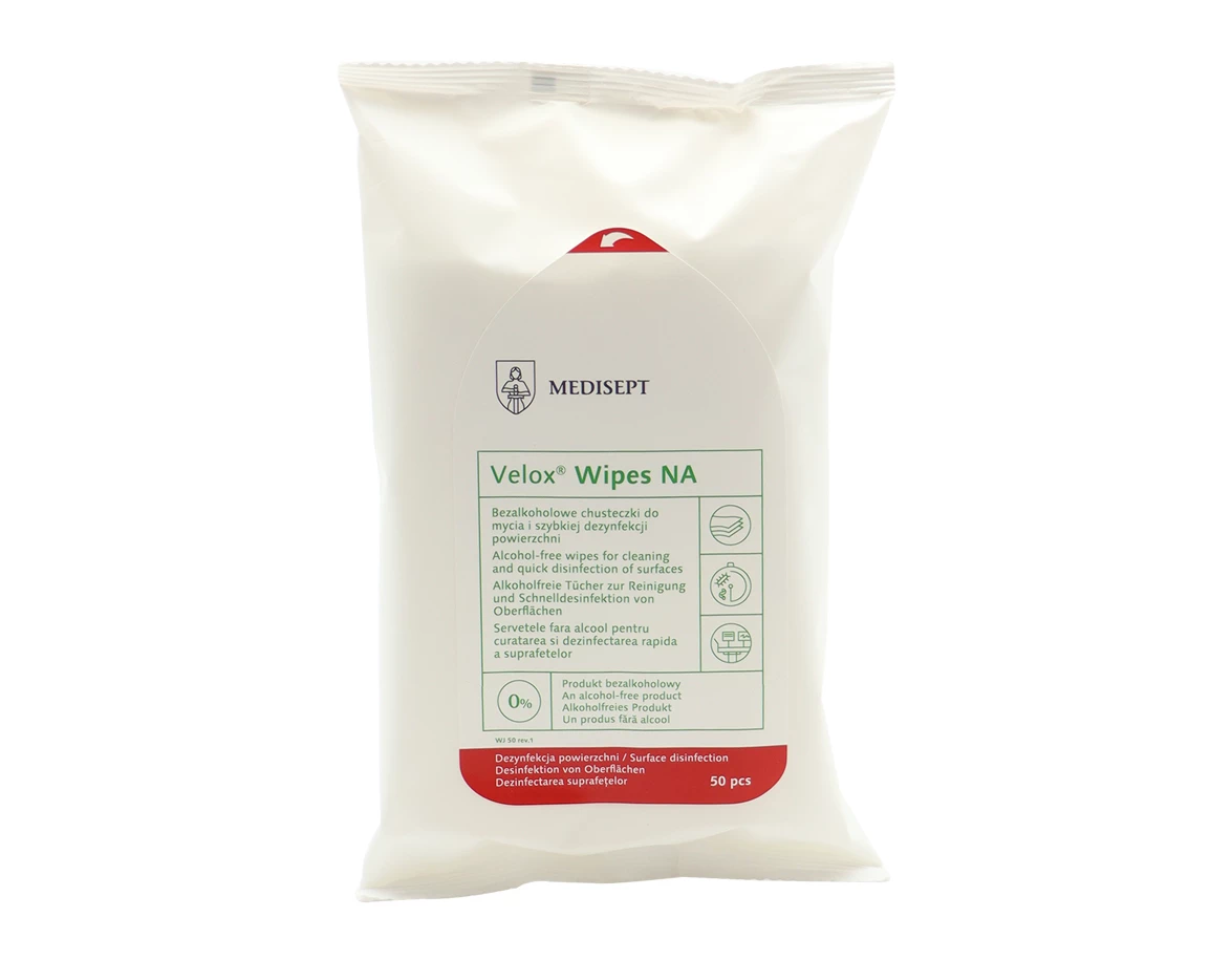 Sú skvelým pomocníkom všade tam, kde sa vyžaduje rýchla a šetrná dezinfekcia pracovných nástrojov, vybavenia, čalúnených lehátok a podobne. Možno ich použiť na dezinfekciu povrchov vyrobených z plastu, nehrdzavejúcej ocele, kovu, hliníka, gumy, porcelánu aj akrylového skla. Utierky Velox® Wipes NA dokážu zničiť baktérie a plesne do 1 minúty od použitia a pôvodcov tuberkulózy už do 5 minút.