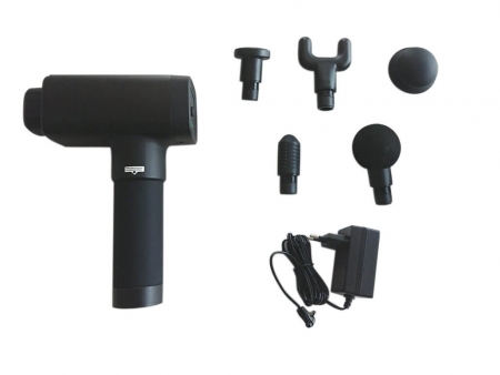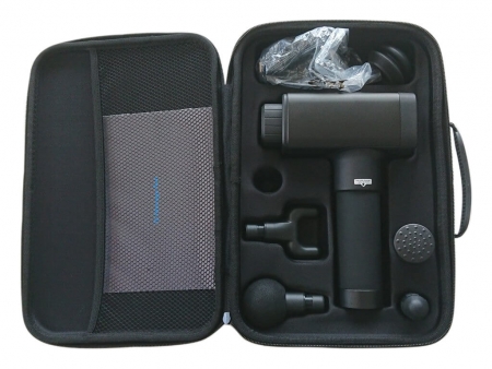 Výrobok je dodávaný v praktickom puzdre, ktoré obsahuje samotné telo masážnej pištole, batériu, nabíjačku a 4 vymeniteľné hlavice.