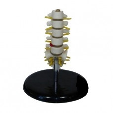 Zmenšenina driekových stavcov a kostrče s miechovými nervami a ukážkou poškodenia medzistavcovej platničky.